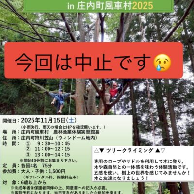 2025年9月20日 山形県庄内町風車村にて、体験会を開催いたしました! ツリーハウスお披露目イベントと一緒にツリークライミン...